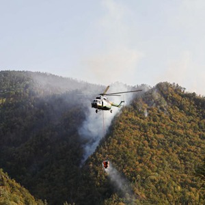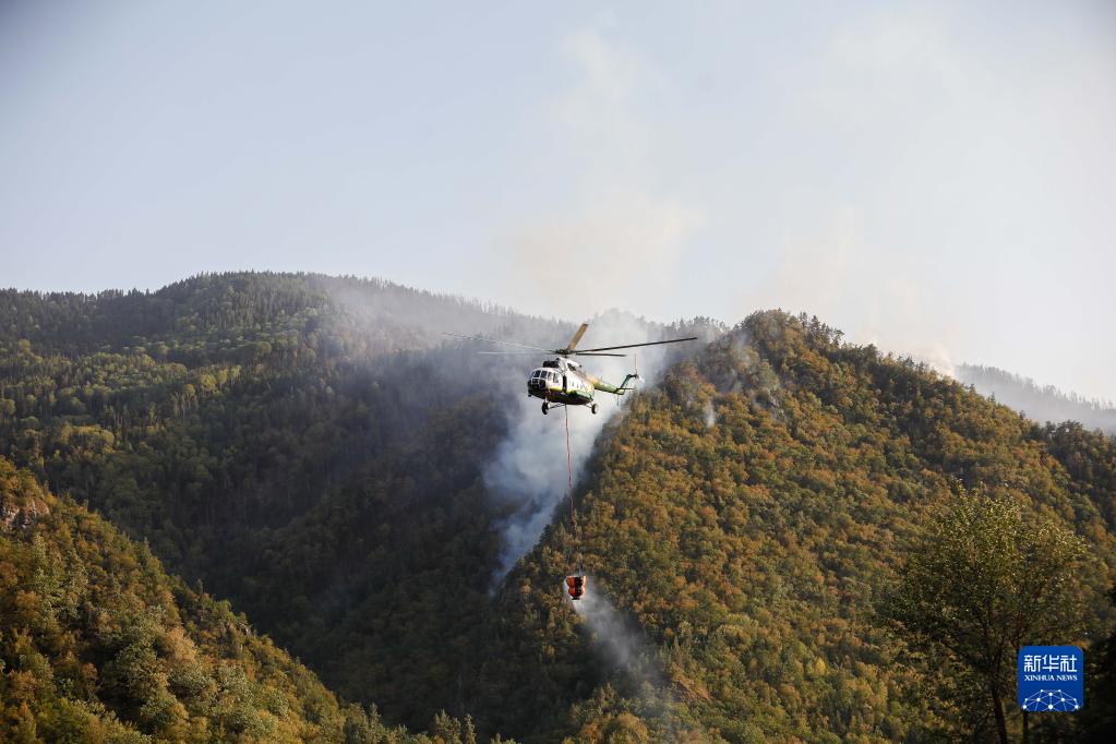 8月24日,直升機在格魯吉亞中部博爾若米附近山區滅火。