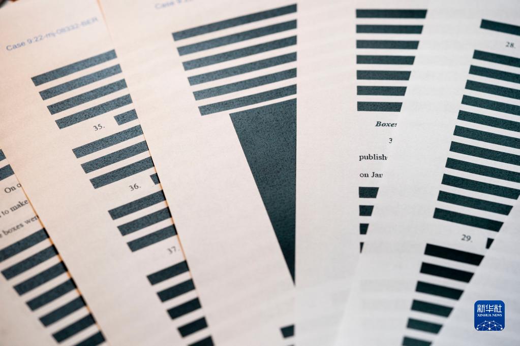 這是8月26日拍攝的美國聯(lián)邦調查局申請搜查前總統特朗普住所海湖莊園時(shí)向法院提交書(shū)面證詞的部分內容。