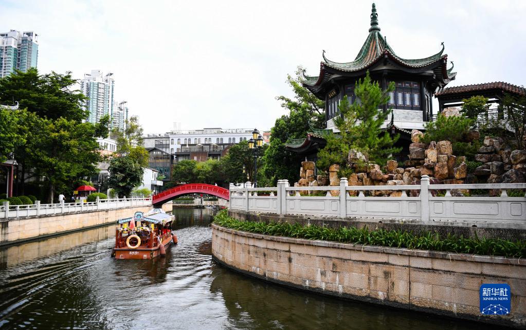 2022年7月19日,游船在廣州永慶坊河道內穿行。
