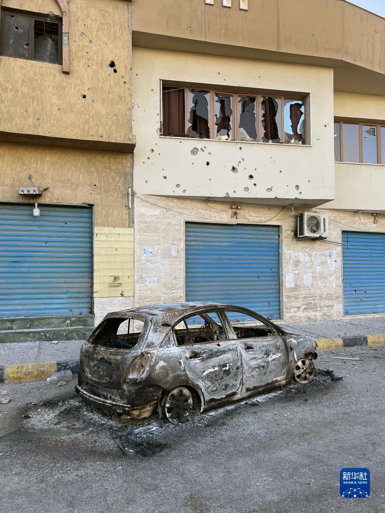 這是8月27日在利比亞首都的黎波里拍攝的損毀的汽車(chē)。
