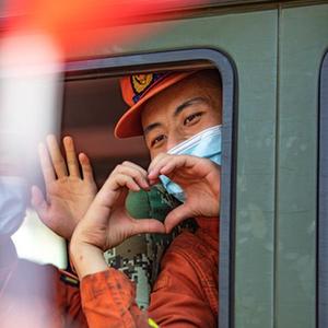 8月28日,在重慶市北碚區,群眾自發(fā)來(lái)到道路兩旁歡送森林消防隊員。