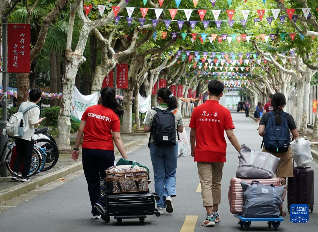 8月28日,復旦大學(xué)迎新志愿者幫助新生運送行李。