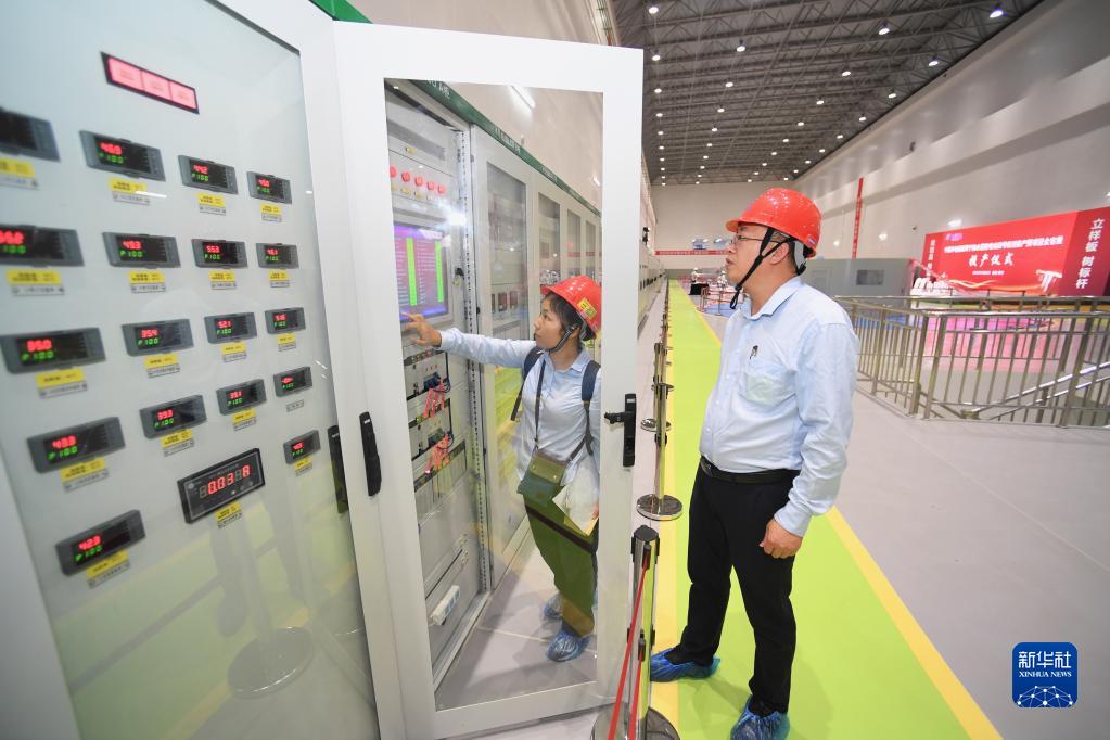 8月28日,福建周寧抽水蓄能電站地下廠(chǎng)房運維人員在檢查設備。