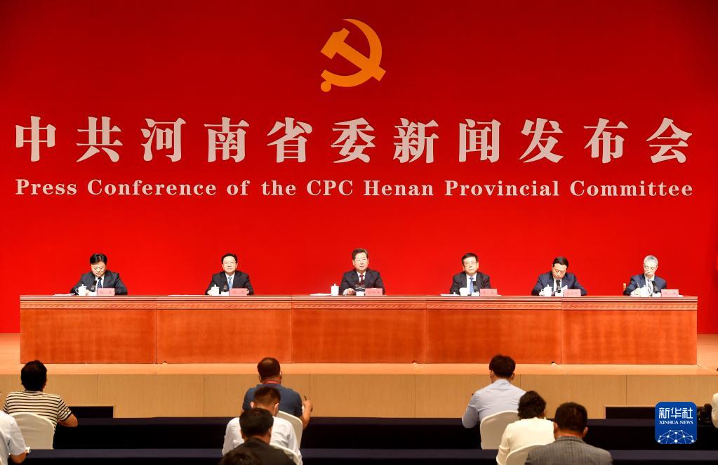 這是8月28日拍攝的“中國這十年·河南”主題新聞發(fā)布會(huì )現場(chǎng)。