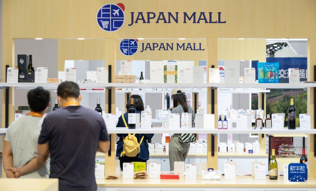 8月28日,在國家會(huì )議中心舉行的服貿會(huì )媒體探營(yíng)活動(dòng)中,人們在日本展臺觀(guān)看展品。