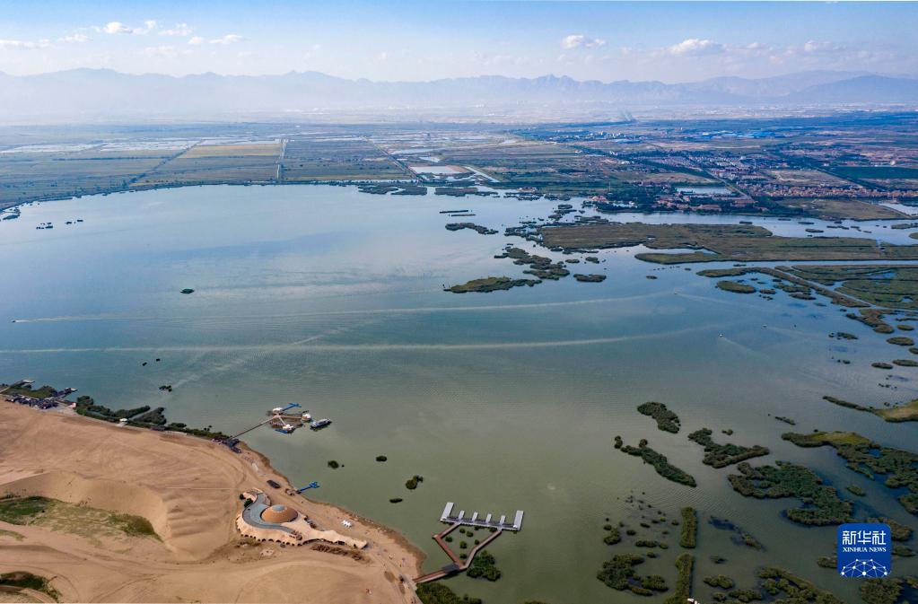 這是8月28日拍攝的寧夏沙湖景區(無(wú)人機照片)。