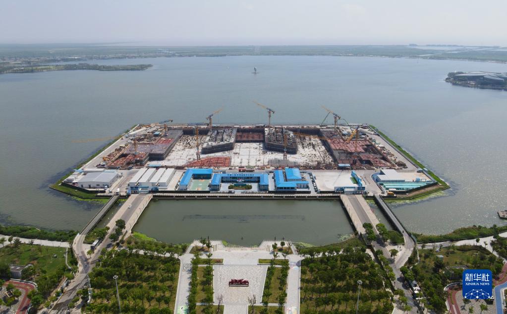 8月29日,空中俯瞰臨港西島金融中心項目工地(無(wú)人機照片)。