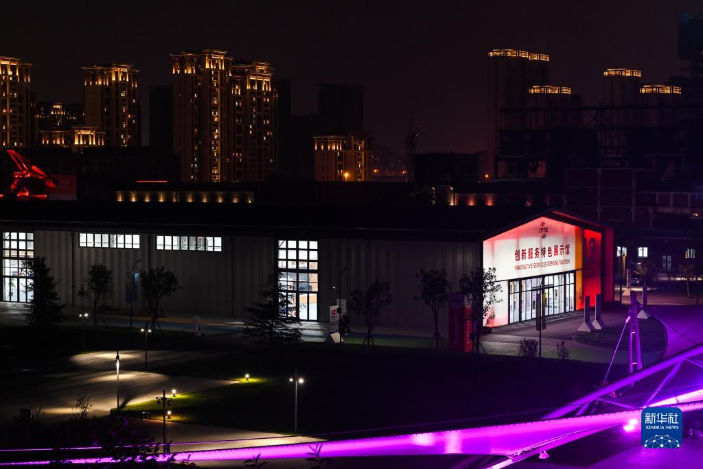 這是8月29日在服貿會(huì )媒體探營(yíng)活動(dòng)中拍攝的首鋼園區夜景。
