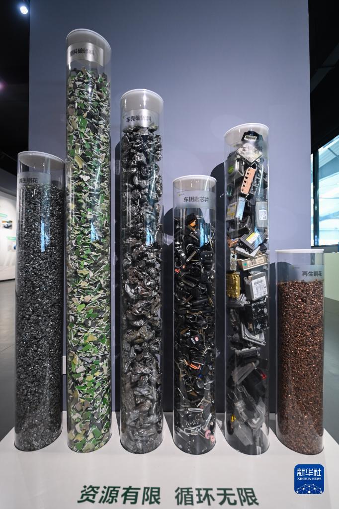 8月30日在湖州市吳興區東林鎮一家機動(dòng)車(chē)回收拆解企業(yè)的展廳內拍攝的機動(dòng)車(chē)拆解后可以分類(lèi)再利用的資源。