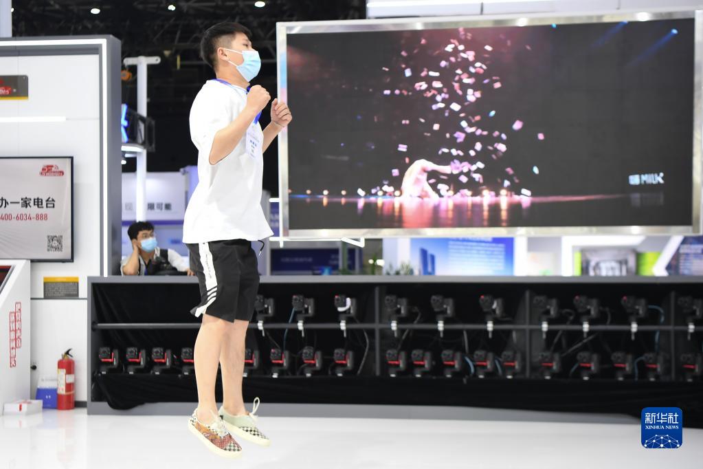 8月30日,工作人員在“新技術(shù) 融創(chuàng )新高地”2022中國新媒體技術(shù)展上展示廣播級超高清時(shí)空凝結自由視角互動(dòng)系統。