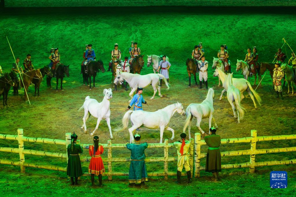 當日,由內蒙古藝術(shù)劇院出品的大型馬舞劇《千古馬頌》在呼和浩特上演。該劇以民族馬術(shù)、馬背雜技、舞馬表演、蒙古族歌舞樂(lè )等藝術(shù)元素為主要表現形式,融合了現代高科技舞臺技術(shù),體現了人與馬、自然和諧共存的精神。