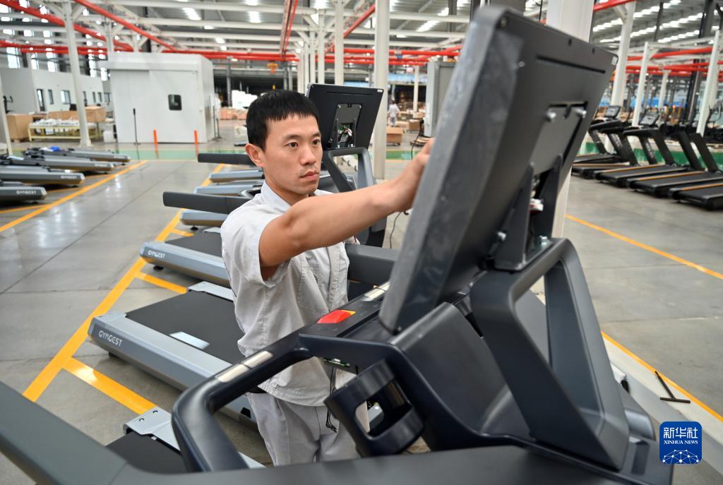8月30日,在日照經(jīng)濟技術(shù)開(kāi)發(fā)區一家企業(yè)組裝車(chē)間,工人調試出口歐美國家的智能跑步機。