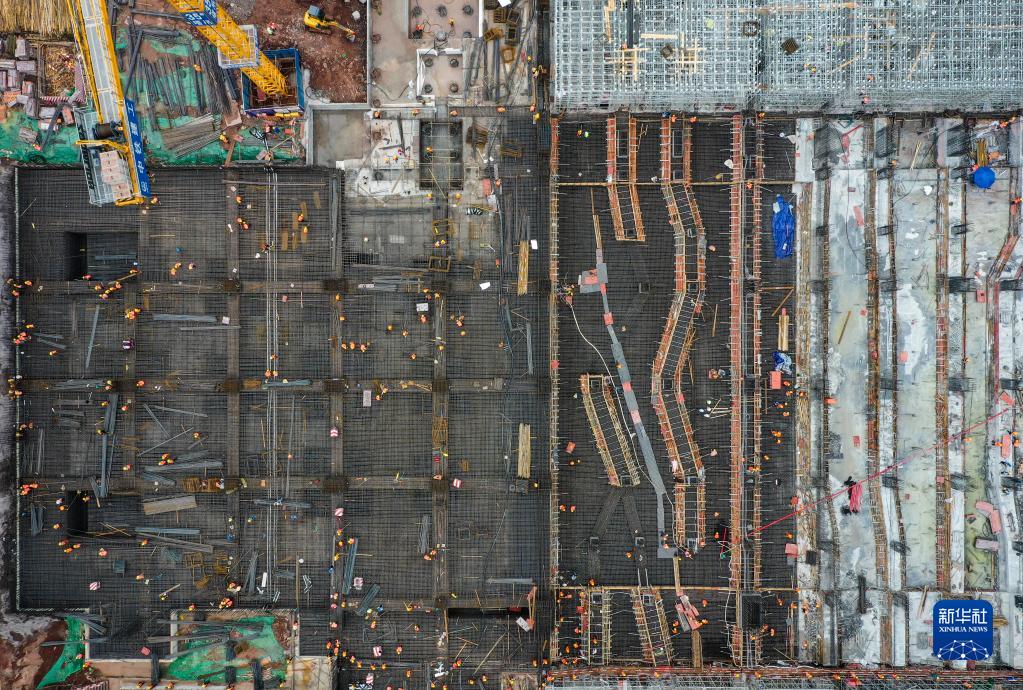 這是8月31日拍攝的重慶東站樞紐新城項目施工作業(yè)現場(chǎng)(無(wú)人機照片)。