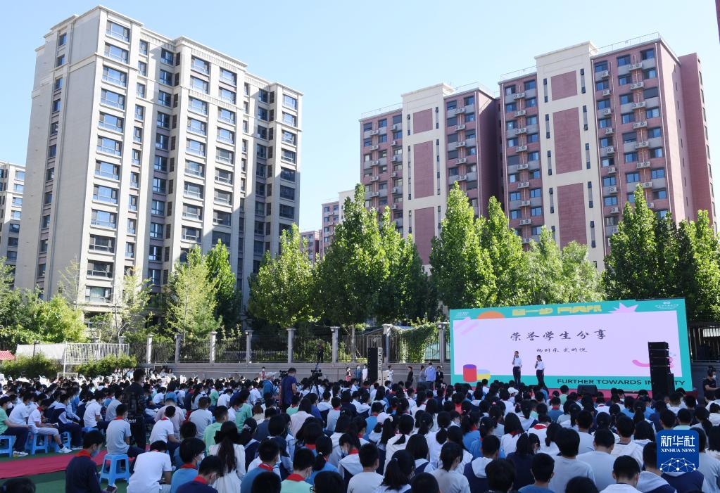 9月1日,學(xué)生在北京十一晉元中學(xué)的開(kāi)學(xué)典禮上發(fā)言。
