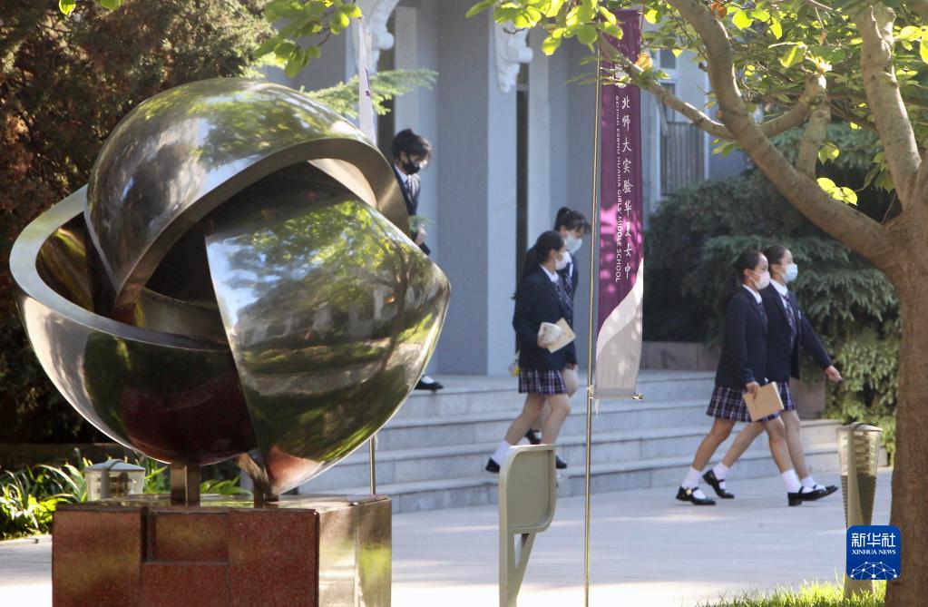 9月1日,北京師范大學(xué)實(shí)驗華夏女子中學(xué)的學(xué)生準備參加開(kāi)學(xué)典禮。