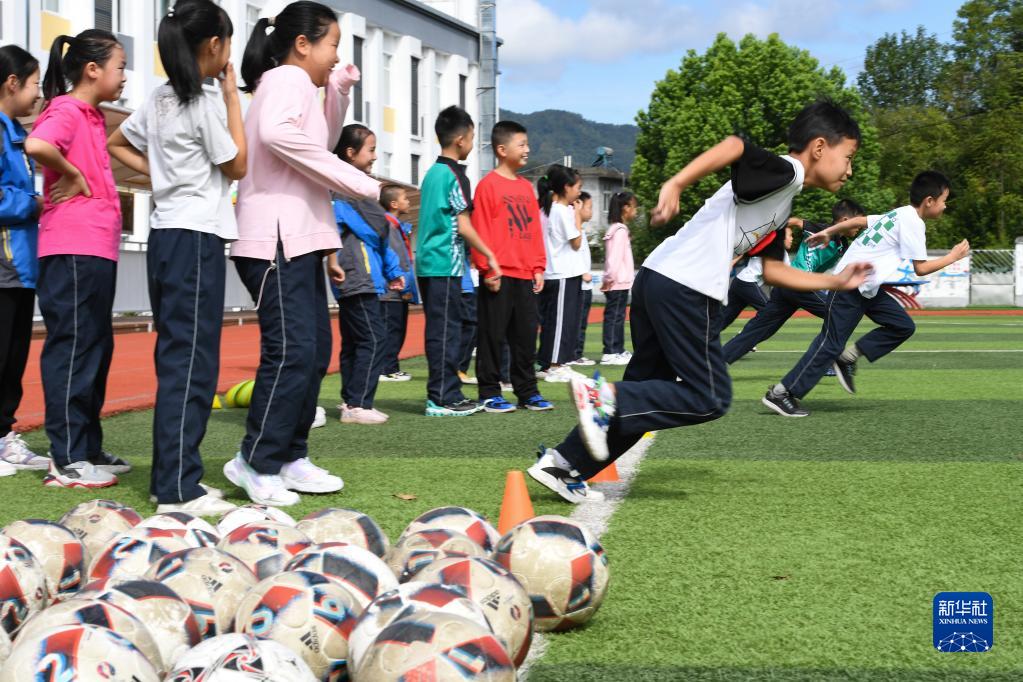 9月1日,在陜西安康平利縣老縣鎮中心小學(xué),學(xué)生在新學(xué)期的第一節體育課上運動(dòng)。