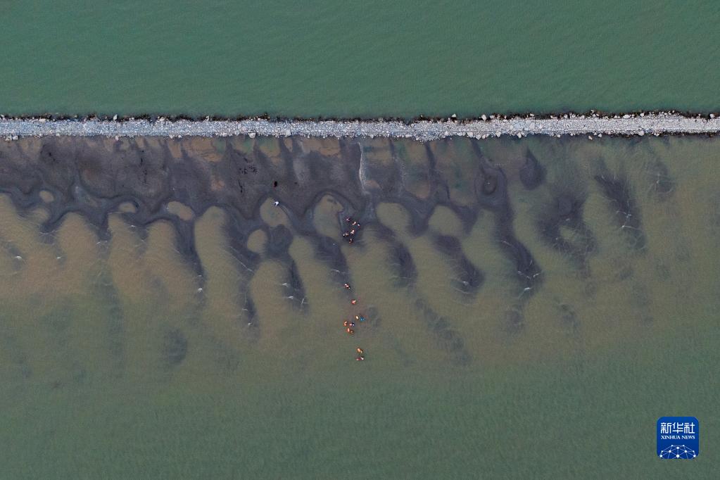 9月1日,長(cháng)江武漢段露出一條江心小道(無(wú)人機照片)。