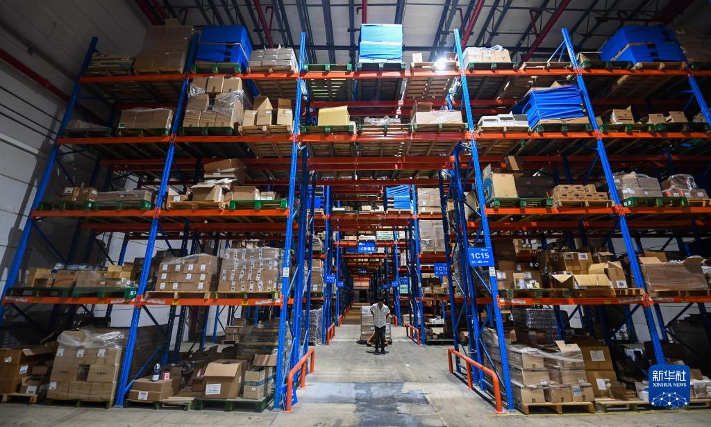 9月2日,在杭州綜合保稅區一家跨境保稅倉內,工作人員在搬運跨境電商保稅進(jìn)口商品?!皵底志C?!本C合服務(wù)平臺提升了跨境保稅倉貨物的流轉效率,為企業(yè)節省時(shí)間和費用。