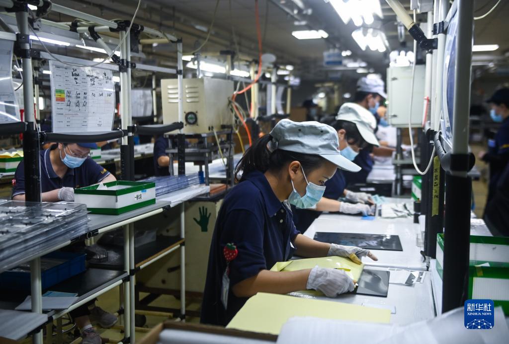 9月2日,杭州綜合保稅區一家外貿企業(yè)的工人在流水線(xiàn)上生產(chǎn)。