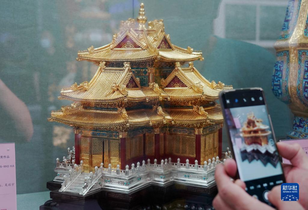 這是9月2日在服貿會(huì )文旅服務(wù)專(zhuān)題展區拍攝的《銀花絲鑲嵌故宮角樓》展品。新華社記者 張晨霖 攝
