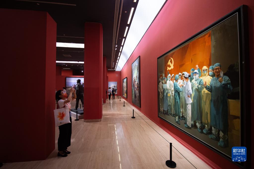 9月2日,觀(guān)眾在觀(guān)看展覽中的作品《新生——浙里抗疫》。