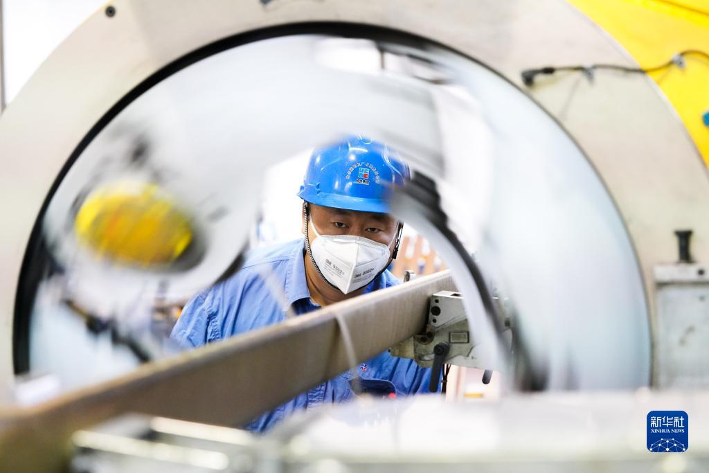 9月3日,在哈電集團哈爾濱電機廠(chǎng)有限責任公司的生產(chǎn)車(chē)間,工人在進(jìn)行生產(chǎn)作業(yè)。
