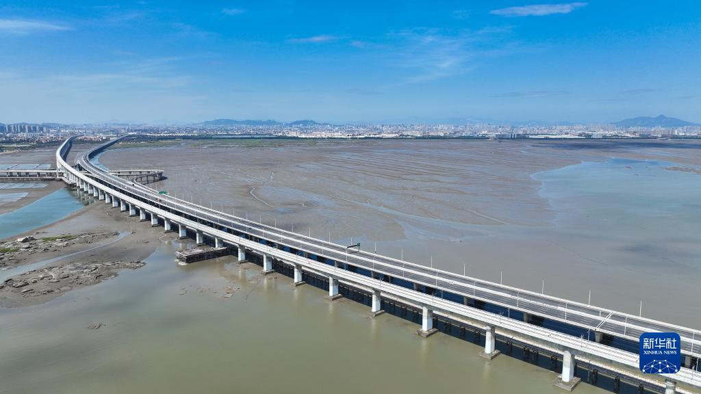 這是9月2日拍攝的新建福廈鐵路泉州灣跨海大橋(無(wú)人機照片)。