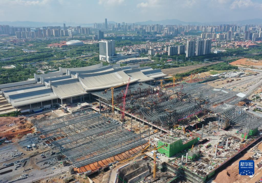 新建福廈鐵路廈門(mén)北站施工現場(chǎng)(8月30日攝,無(wú)人機照片)。