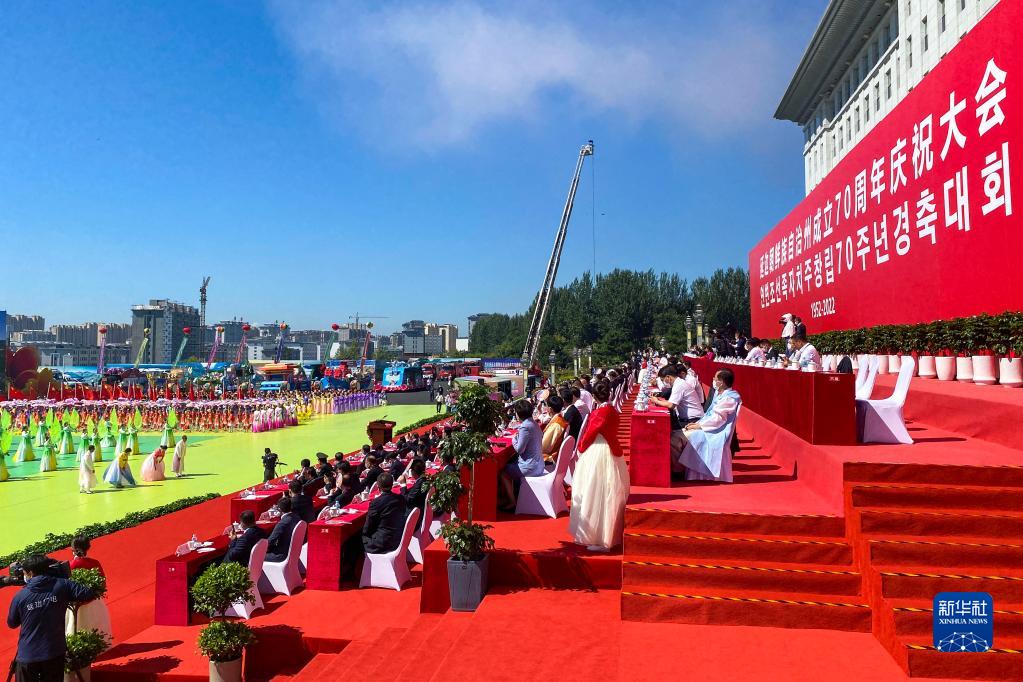 這是9月3日拍攝的慶祝大會(huì )現場(chǎng)。