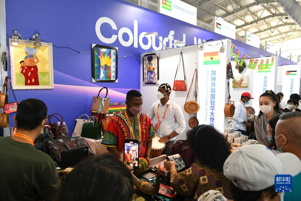 9月4日,參觀(guān)者在首鋼園區加納共和國駐華大使館展臺了解特色產(chǎn)品。
