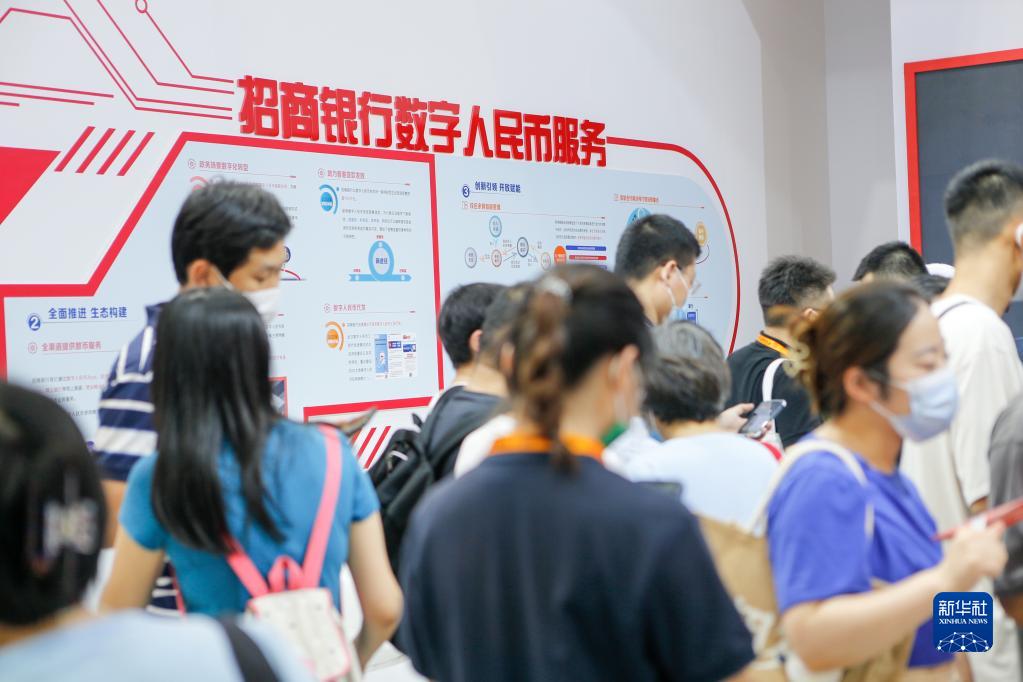 9月3日,在服貿會(huì )首鋼園區金融服務(wù)專(zhuān)題展上,觀(guān)眾在招商銀行展臺辦理數字人民幣業(yè)務(wù)。 新華社記者 丁洪法 攝