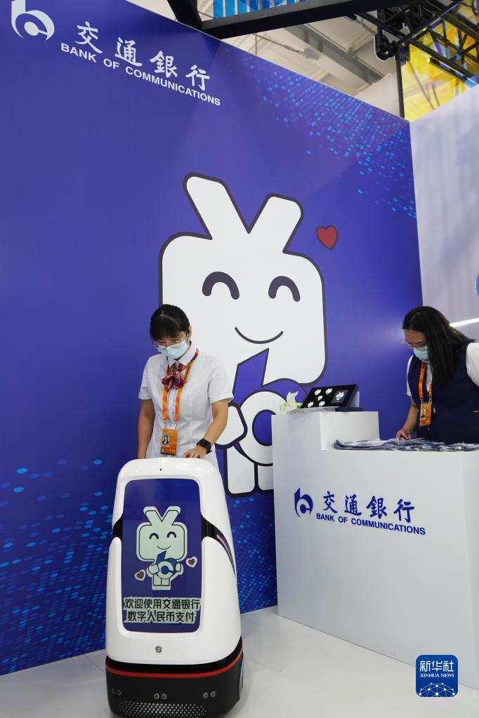 9月4日,在服貿會(huì )首鋼園區金融服務(wù)專(zhuān)題展上,一位交通銀行工作人員操作數字人民幣支付智能機器人。 新華社記者 金皓原 攝