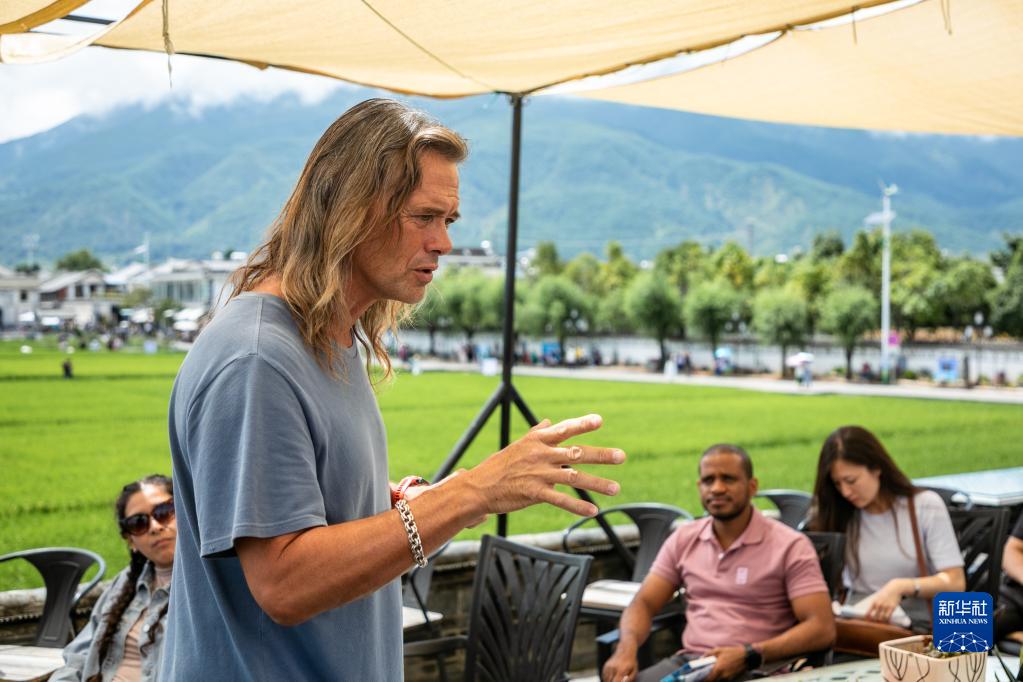 8月27日,林登在喜洲古鎮喜林苑向外國訪(fǎng)客介紹當地文化。
