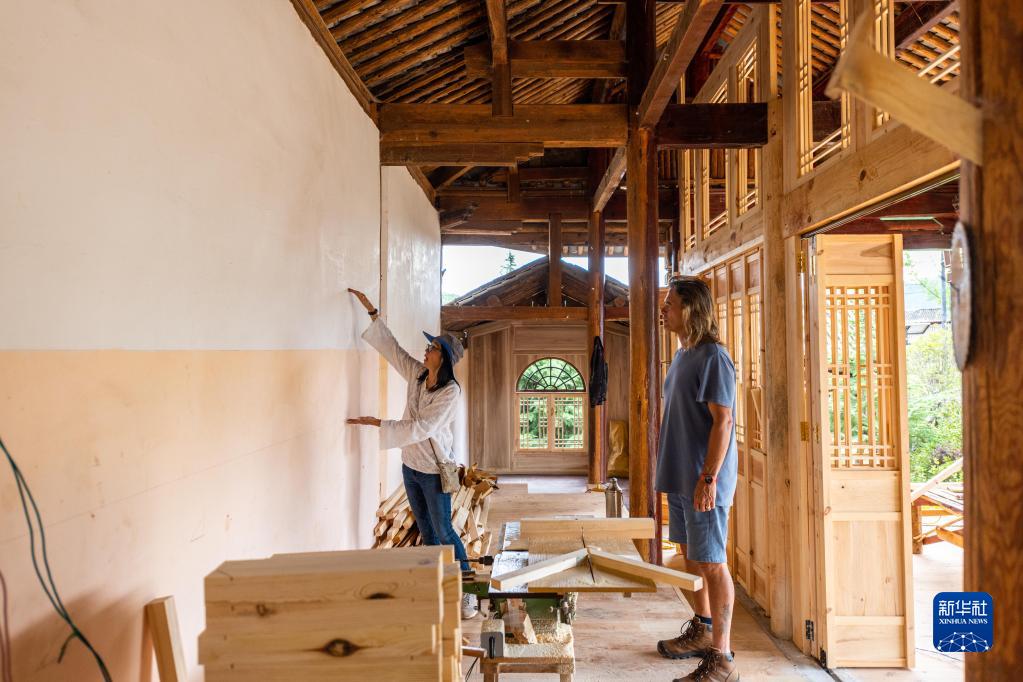 8月31日,林登和妻子瑾妮在沙溪鎮石龍村討論鄉村圖書(shū)館的設計。
