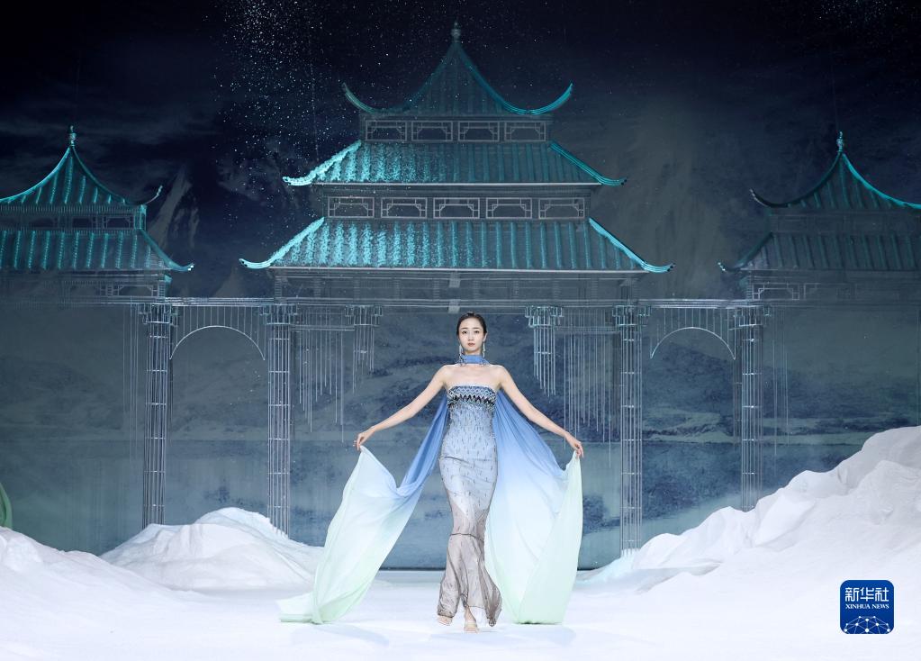 9月4日,模特在中國國際時(shí)裝周(2023春夏系列)開(kāi)幕秀上展示設計師熊英設計的時(shí)裝。