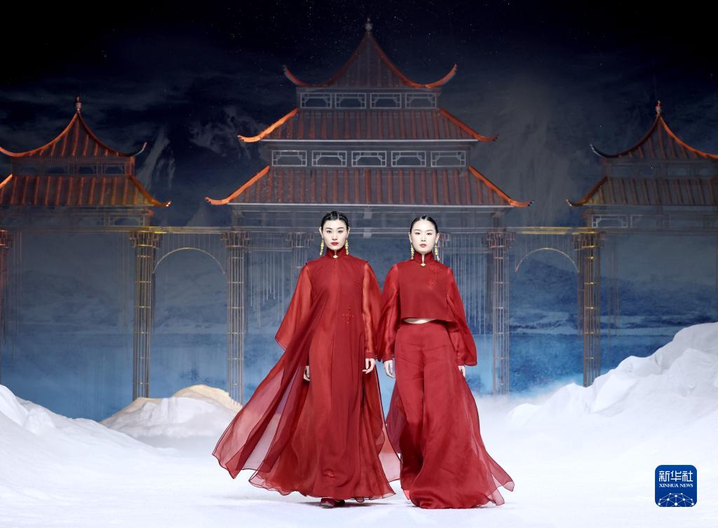 9月4日,模特在中國國際時(shí)裝周(2023春夏系列)開(kāi)幕秀上展示設計師熊英設計的時(shí)裝。