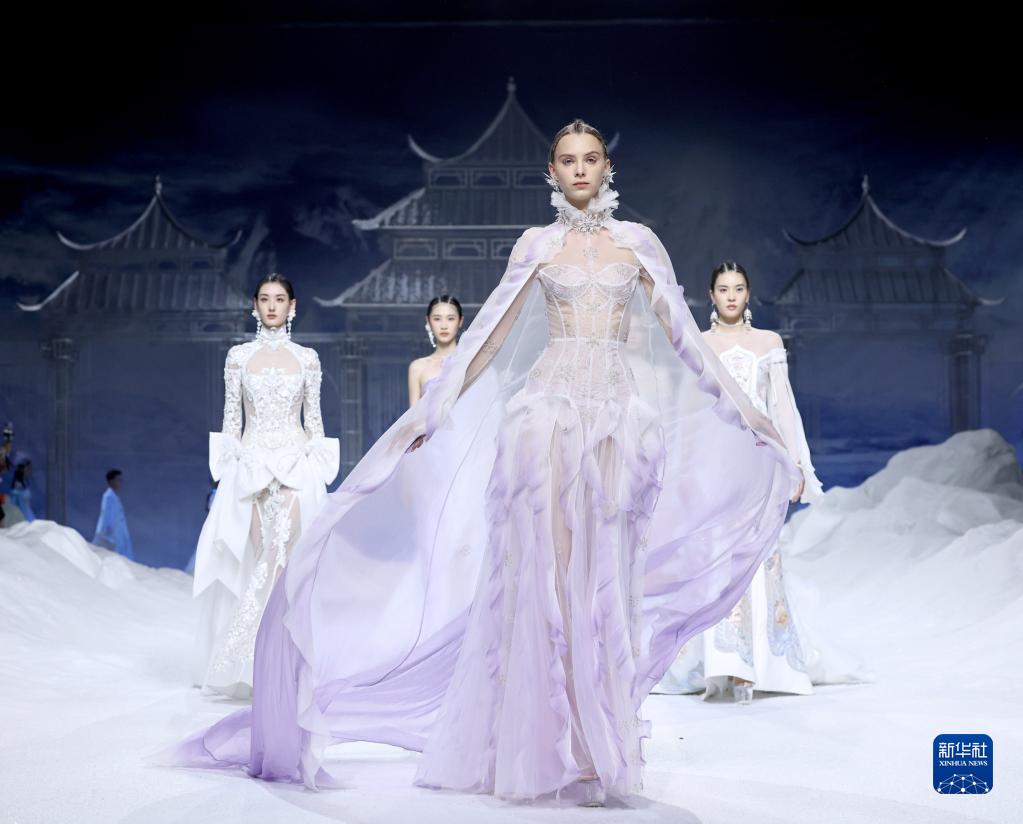 9月4日,模特在中國國際時(shí)裝周(2023春夏系列)開(kāi)幕秀上展示設計師熊英設計的時(shí)裝。