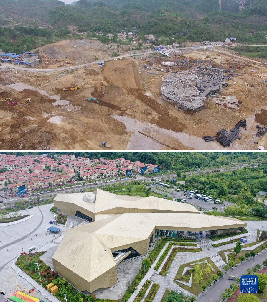 上圖為2015年5月7日拍攝的天文體驗館建設現場(chǎng);下圖為2022年7月19日拍攝的天文體驗館(無(wú)人機照片)。