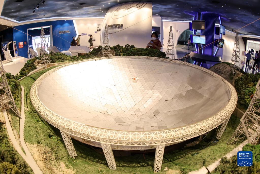 2022年7月20日,參觀(guān)者在天文體驗館內觀(guān)看“中國天眼”模型。