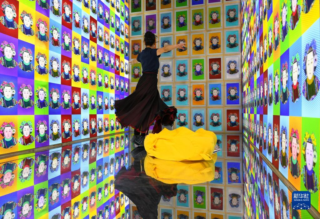 9月4日,觀(guān)眾在服貿會(huì )首鋼園區的文旅服務(wù)專(zhuān)題展區體驗沉浸式數字藝術(shù)空間。