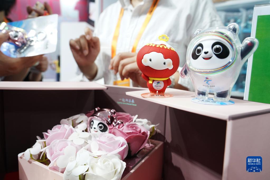 9月5日在服貿會(huì )首鋼園區的文旅服務(wù)專(zhuān)題展區拍攝的北京冬奧會(huì )特許商品。