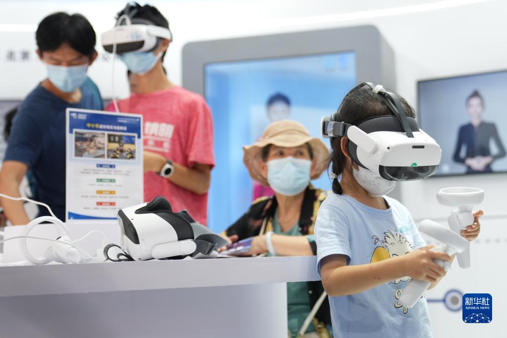 9月4日,在服貿會(huì )首鋼園區文旅服務(wù)專(zhuān)題展,小朋友在進(jìn)行VR體驗。