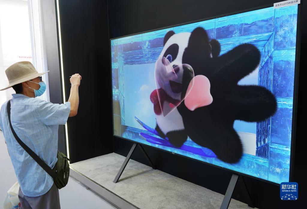9月4日,觀(guān)眾在服貿會(huì )首鋼園區的文旅服務(wù)專(zhuān)題展區感受京東方8K裸眼3D屏幕。