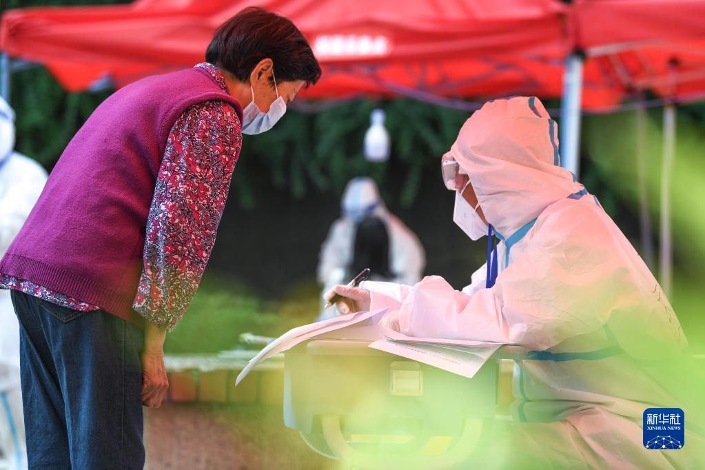 9月5日,醫護人員在貴陽(yáng)市云巖區大營(yíng)路街道中天花園社區為市民做核酸檢測信息登記。