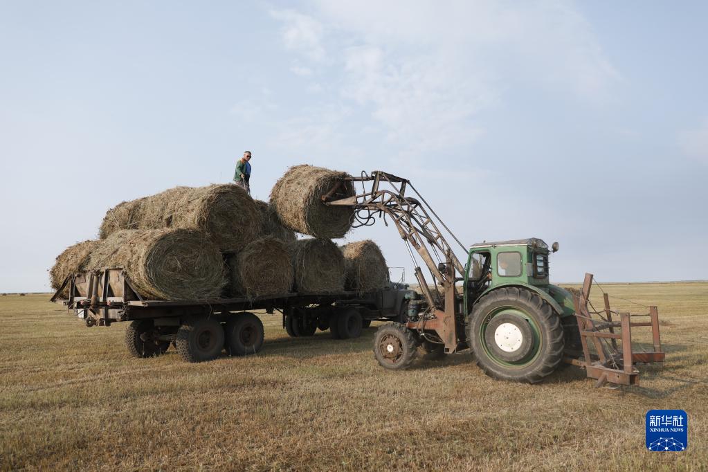 哈薩克斯坦北部地區9月進(jìn)入牧草集中收割的季節,成片的牧草被牧民收割、曬干并捆成草垛,以備牲畜在冬季食用。新華社發(fā)(奧斯帕諾夫攝)