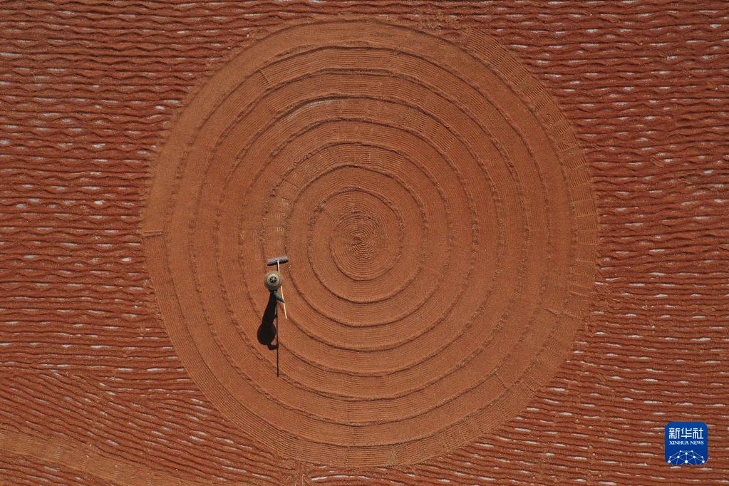 秋日里,各地農民搶抓農時(shí)收獲、晾曬農作物,到處是一派豐收的景象。