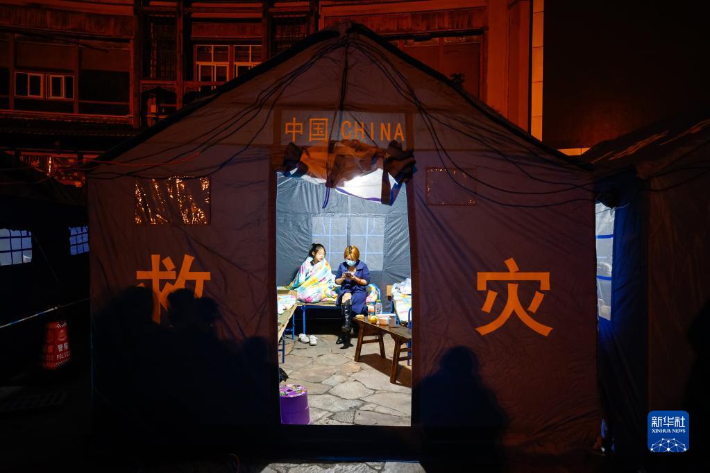 9月5日晚,在四川甘孜州瀘定縣磨西鎮的受災群眾臨時(shí)安置點(diǎn),受災群眾在帳篷里休息。