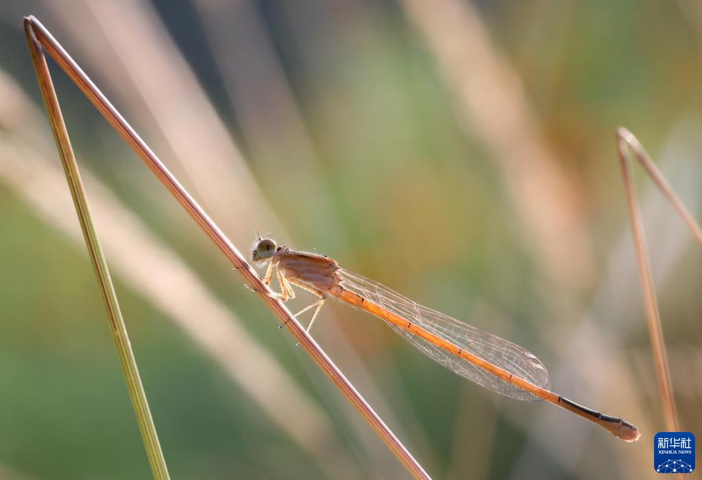 8月25日,在云南騰沖市,一只豆娘停落在草桿上。