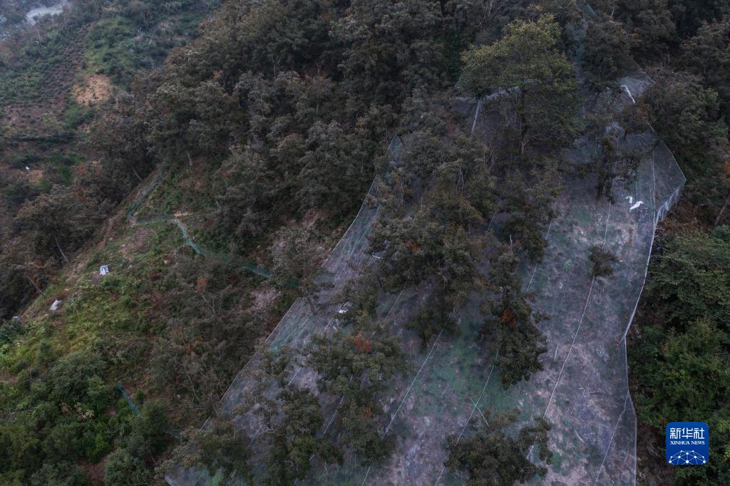 9月7日,空中俯瞰群山中的淳安縣臨岐鎮審嶺腳村,山林中種植了大批山核桃樹(shù),樹(shù)下鋪了大片的采收網(wǎng)(無(wú)人機照片)。