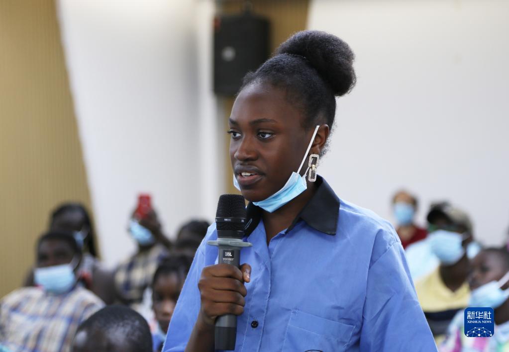 9月6日,在塞內加爾達喀爾的“天宮對話(huà)”活動(dòng)塞內加爾分會(huì )場(chǎng),一名學(xué)生向中國航天員提問(wèn)。